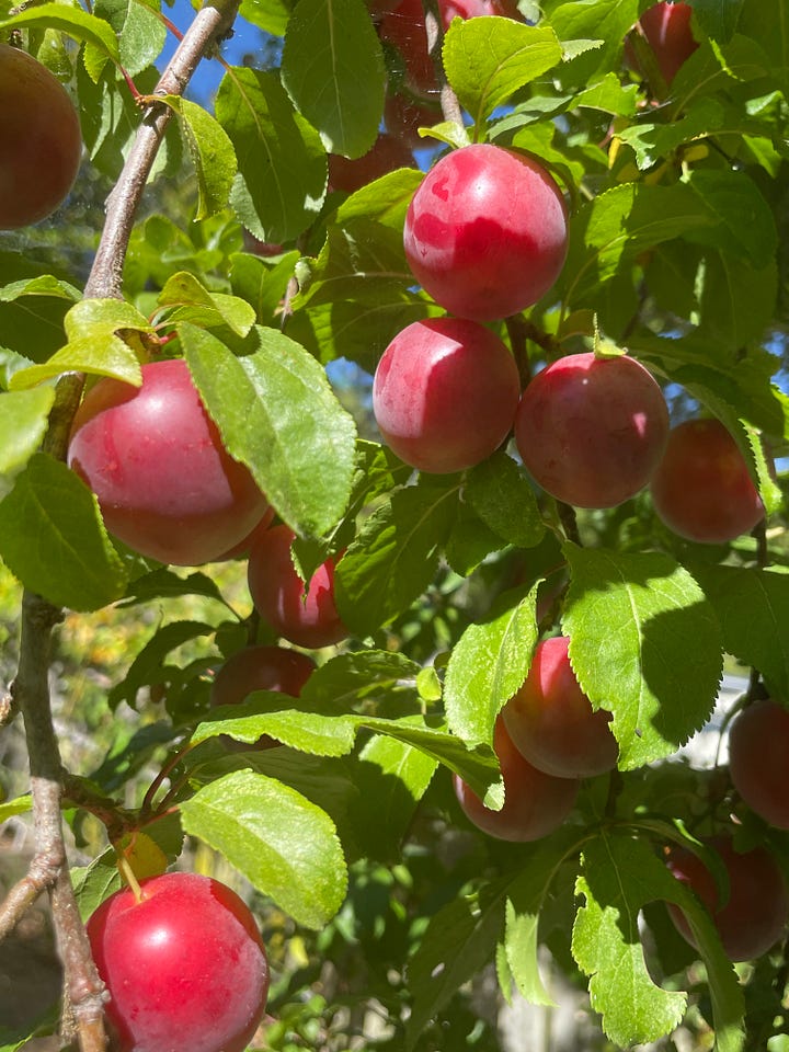 It has been said before: the garden is the cook’s muse When my mind is empty (“what should I write about today?”), I just take a walk among my vegetable beds and fruit trees and find that the answer is right at my feet or in the leaves above. The garden fertilizes my imagination and loosens my pen. On my own hillside right now, I am watching two old wild plum trees heave under a load of fruit, their branches weighed nearly to the ground. The trees were here when we bought the property 30 years ago and most every year, we have more plums than we could ever use.